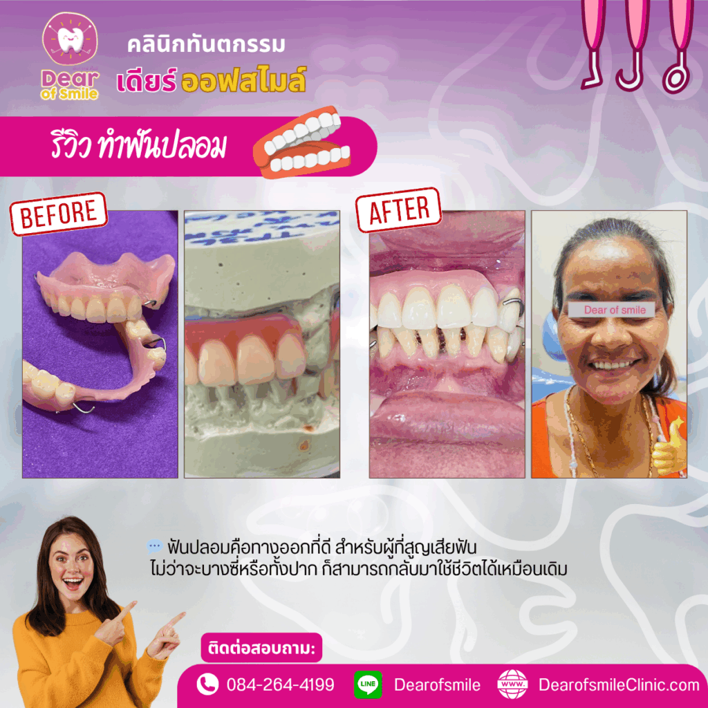 คนไข้สูญเสียฟันไปหลายซี่ ทั้งบนและล่าง ต้องการทำฟันปลอมเพื่อการบดเคี้ยวและความสวยงาม เพื่อเพิ่มความมั่นใจในการทำงาน การเข้าสังคม และการทานอาหาร เคี้ยวอาหารได้ดีขึ้นค่ะ